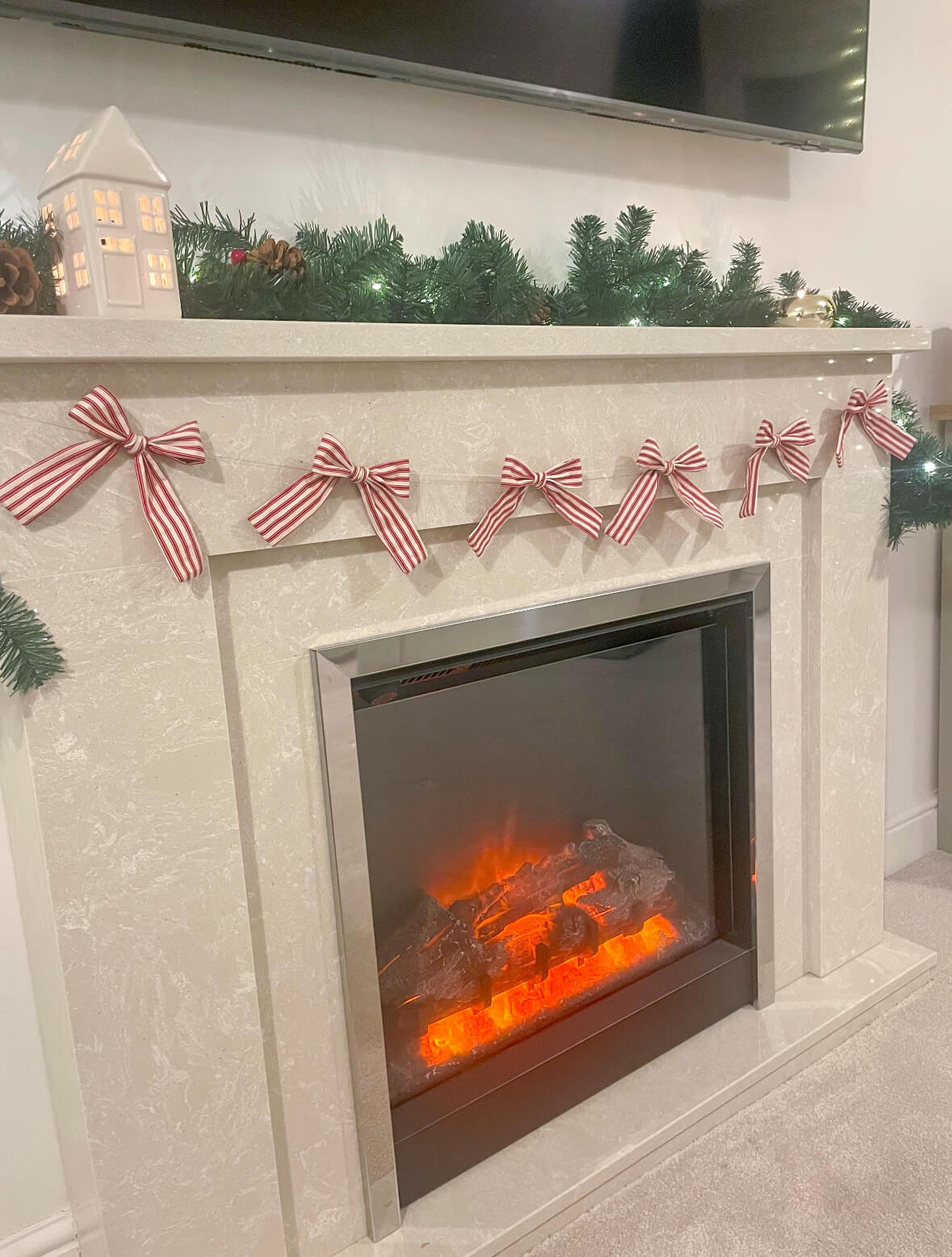 Add some festive charm to your home with a string of 6 handmade fabric bows, hanging from a clear thread to give the illusion of them floating.